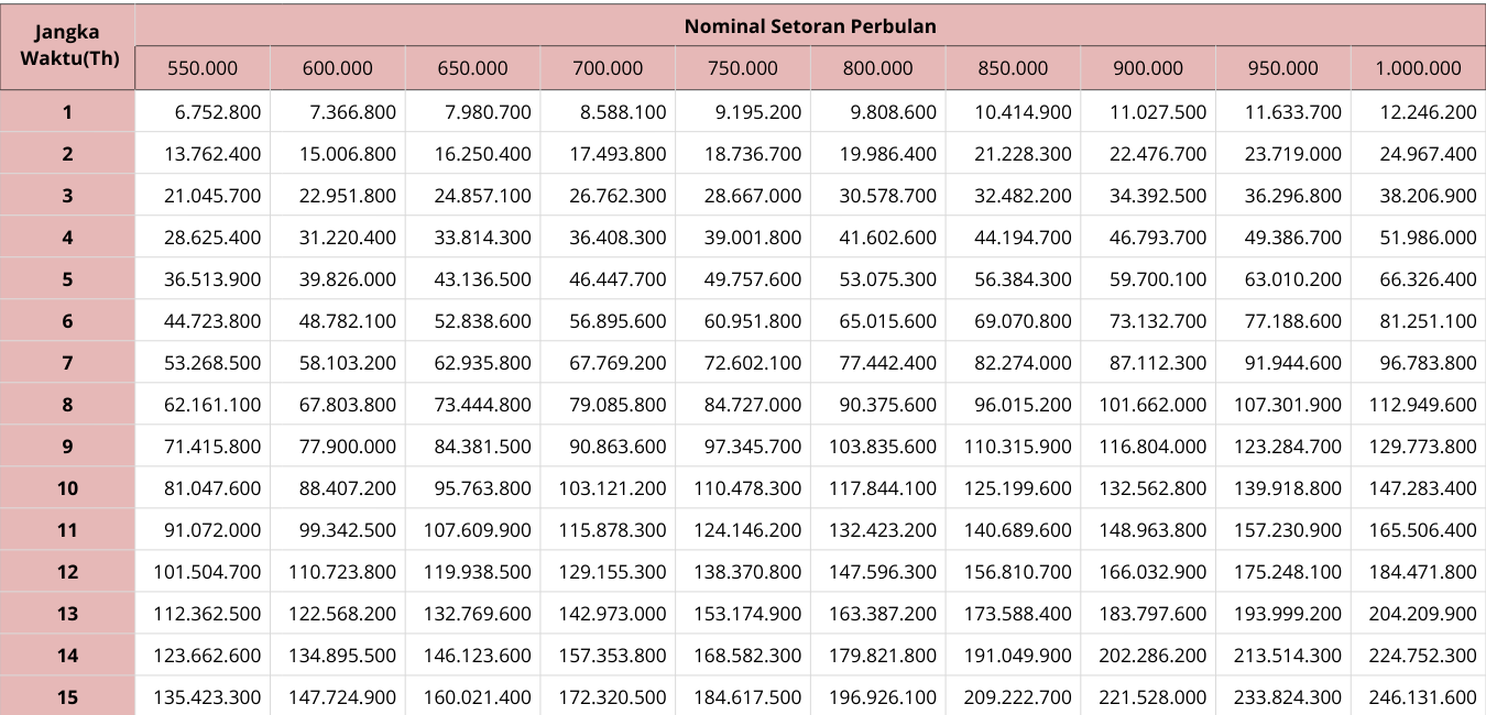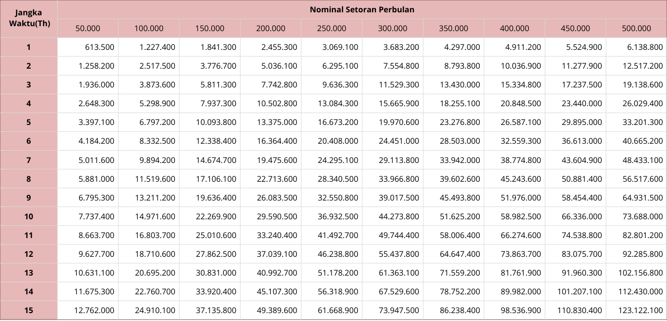 TABEL TABUNGAN TAHAPAN KESRA |
